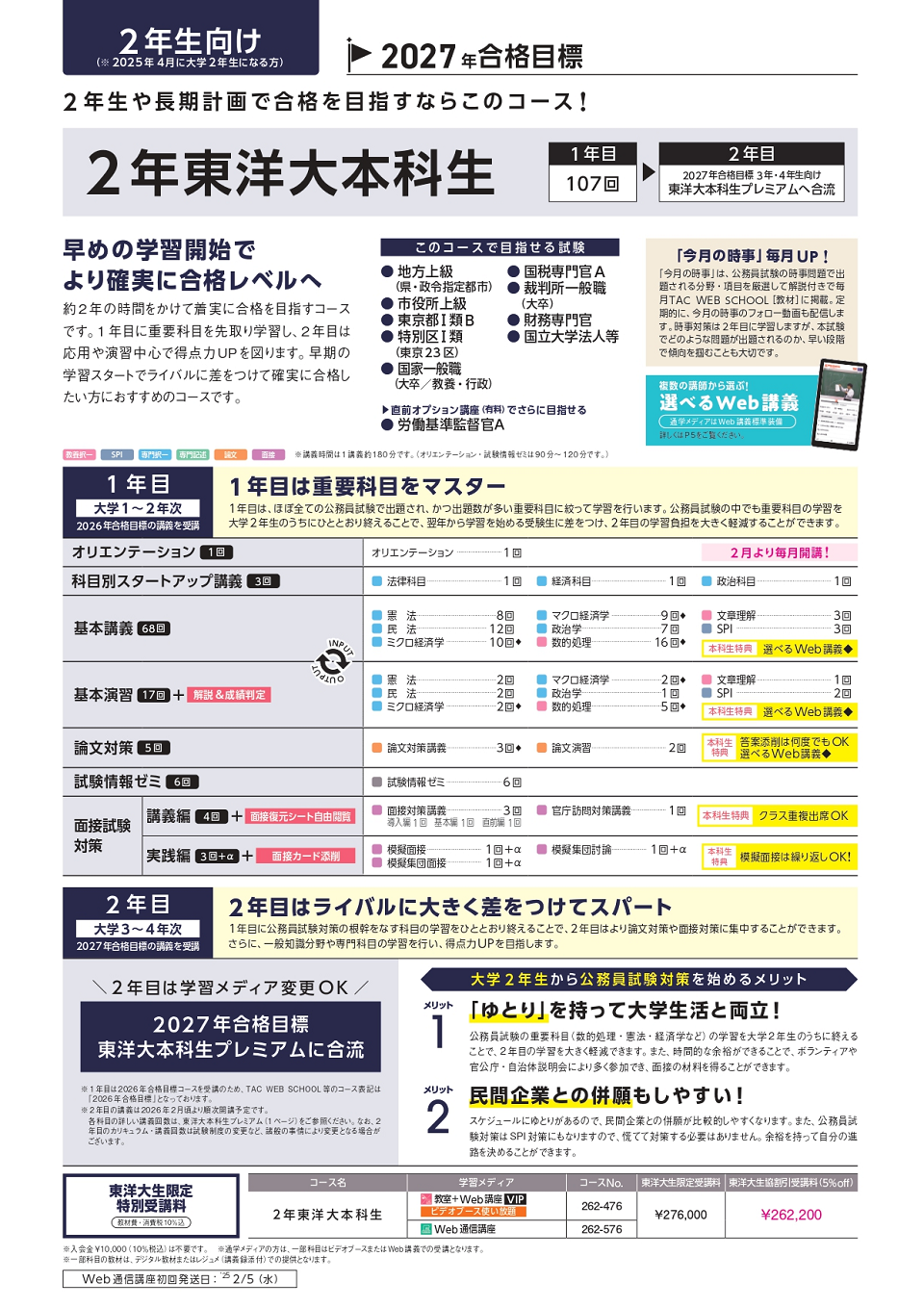 【2027年合格目標】大学新2年生向け(2025年4月に大学2年生になる方):2年東洋大本科生