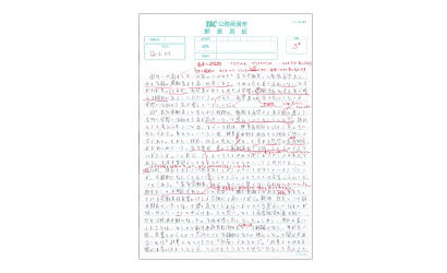 講義で必要な知識やノウハウを身につけた後は、予想問題集をもとに実際に答案を書き、繰り返し答案添削を受けることで、答案作成力を実践を通じて磨きます。本科生は何度でも答案添削を受けられますので、どんなに文章を書くのが苦手な方でも、書いて答案添削を受けた数だけ、着実に上達できます。