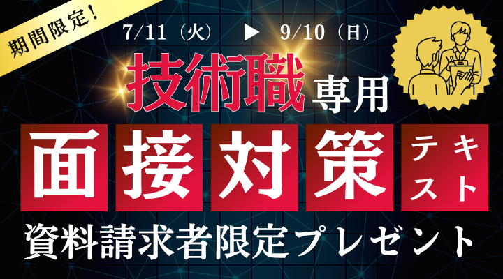 技術職専用「 面接対策テキスト(非売品) 」プレゼント!≪期間限定≫7/11(火)~9/10(日)お申込み完了分