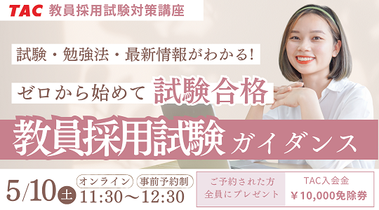 - 【無料オンライン説明会】12/17(水)19:30~ 試験・最新情報・学習法など役立つ情報満載!「教員採用試験ガイダンス」