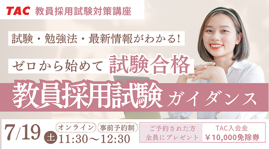 - 【無料オンライン説明会】12/17(水)19:30~ 試験・最新情報・学習法など役立つ情報満載!「教員採用試験ガイダンス」
