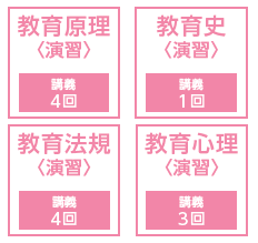 教育原理8回/教育史2回/教育法規8回/教育心理6回