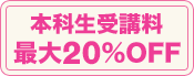 同一講座内の再受講や継続受講で当割引制度をご利用することはできません。また他のTACで実施する割引制度との併用はできません。 NEXT割引の対象者、割引率は予告なく変更となる場合がございます。 NEXT割引の対象になるかどうか不明の場合は各校受付窓口に直接お問い合わせください。 通常受講料にてお申込み後、NEXT割引制度の対象者である旨を申し出られましても差額の返金等に応じることはできません。 |