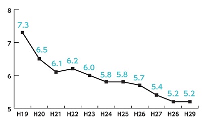 | 群馬県 | 2.4 | 3.0 | 4.5 | 2.7 | 5.6 | ー |
