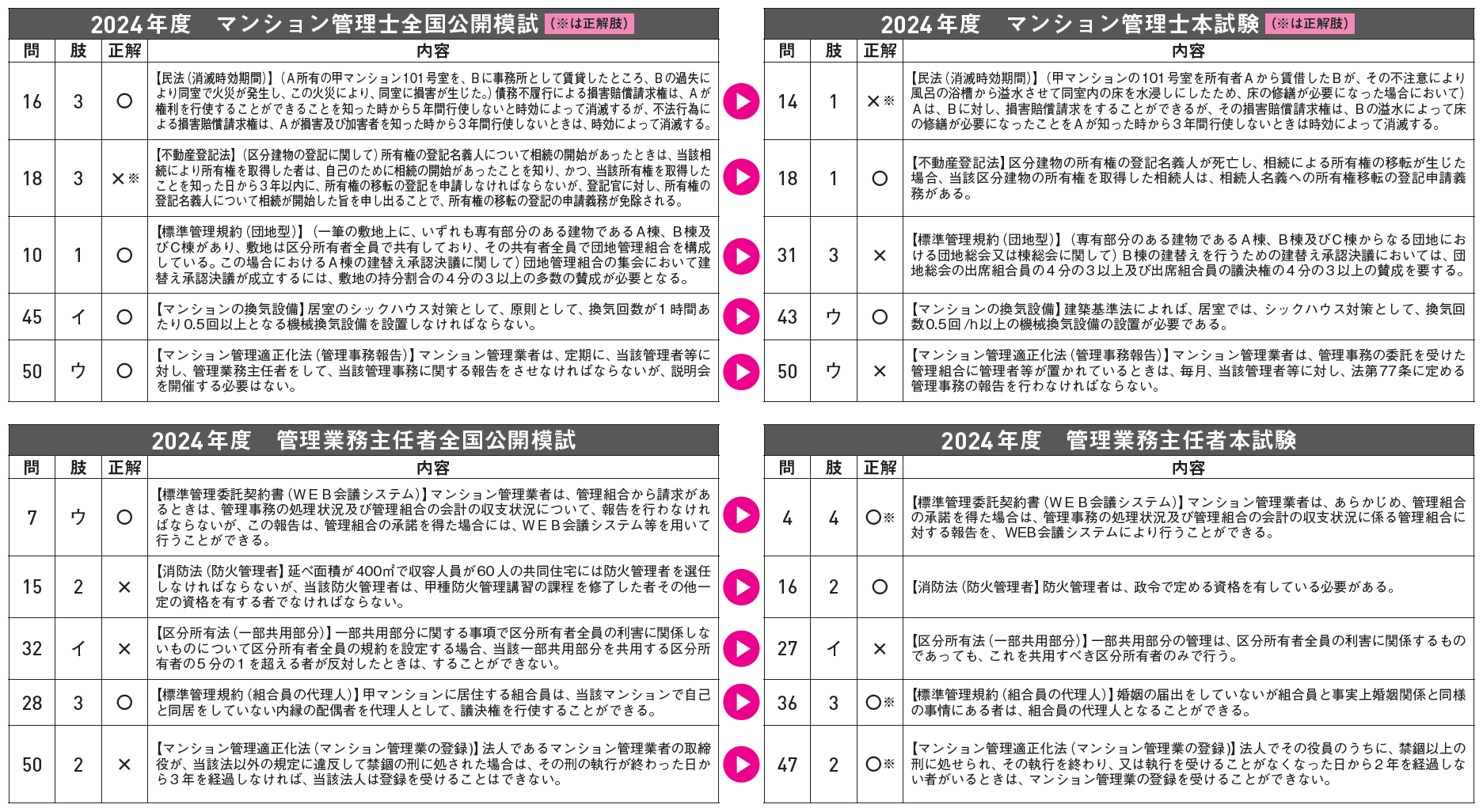 前述の通り、区分所有法の重要論点の多くが改正の対象となっているからです。改正ポイントとその要点がしっかりと理解できていないと、改正前の論点と混同し誤答の原因となります。