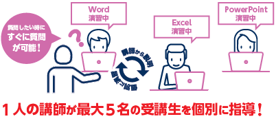 TACパソコンスクールでは、PCスキル(Officeソフト・その他)を実務レベルまで学習できるコースや各種試験対応コースをご用意しています。