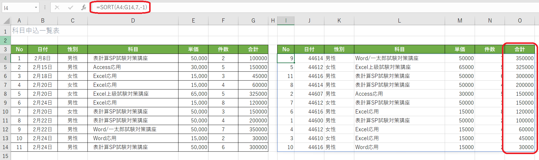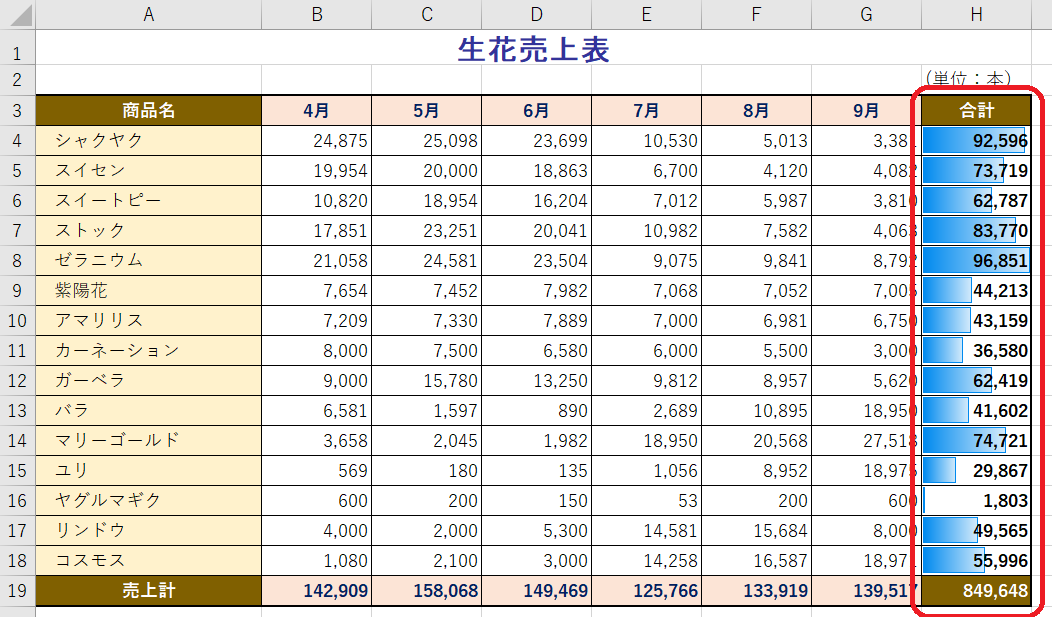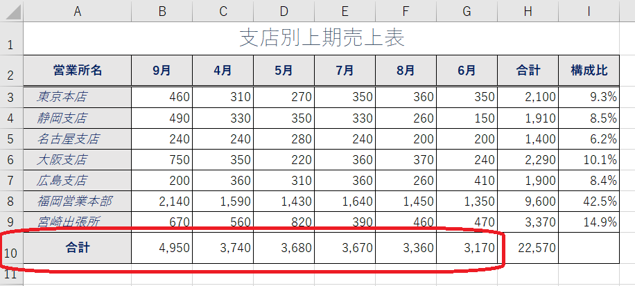 Excelで作成した表を並べ替える際、通常は列ごとに行を並べ替えますが、行ごとに列を並べ替えることもできます。ここでは、表の10行目の「合計」が大きい順になるように列単位でデータを並べ替えてみましょう。