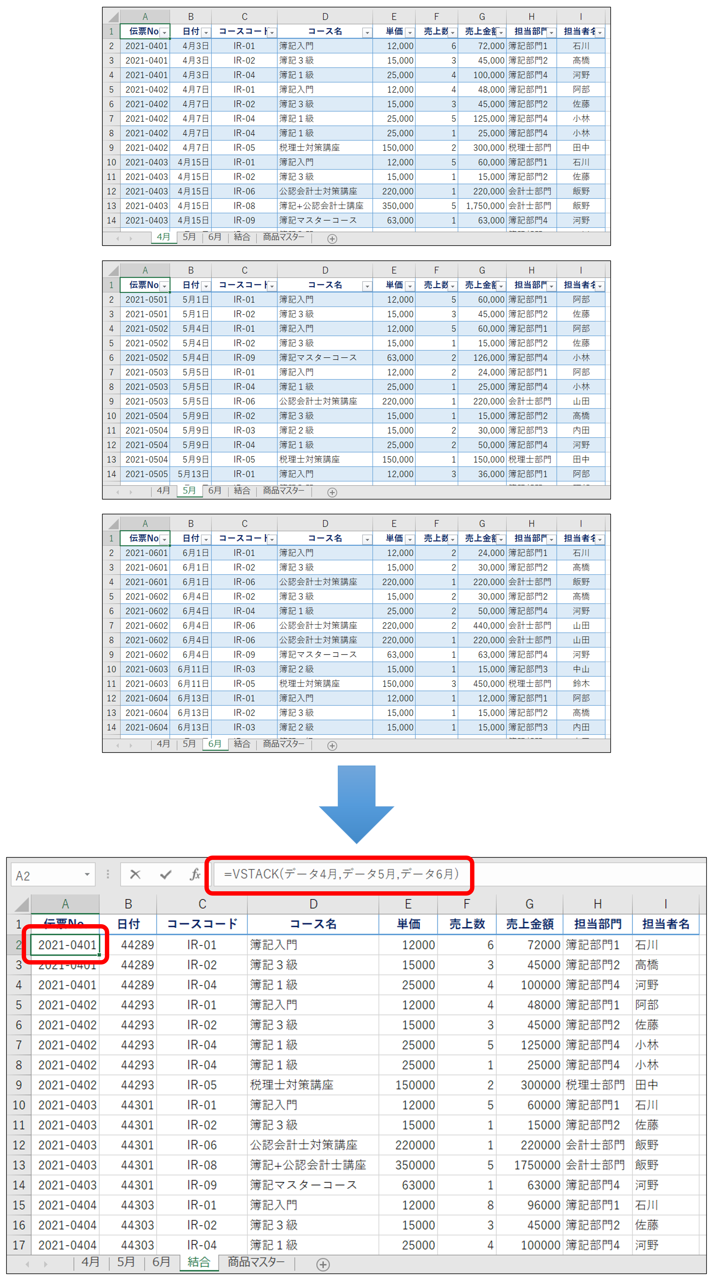 - 複数の表のデータを1つにまとめる-VSTACK関数-