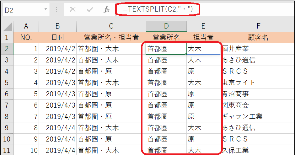 - 指定した区切り文字でデータを分割する-TEXTSPLIT関数-