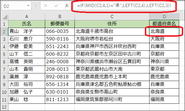 - セルに入力された住所から都道府県だけを取り出す-IF・MID・LEFT関数-