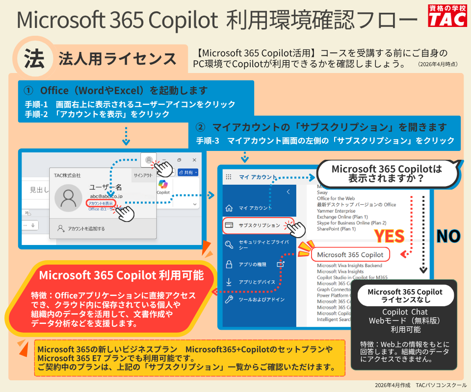 Microsoft 365 Copilot の利用可否は、お使いのライセンスによって異なります。