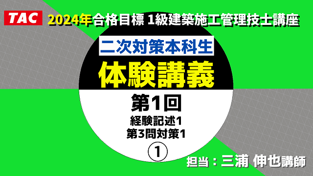 2025年合格目標 1級建築施工管理技士 二次対策本科生 第一回講義②です。(担当:三浦講師)