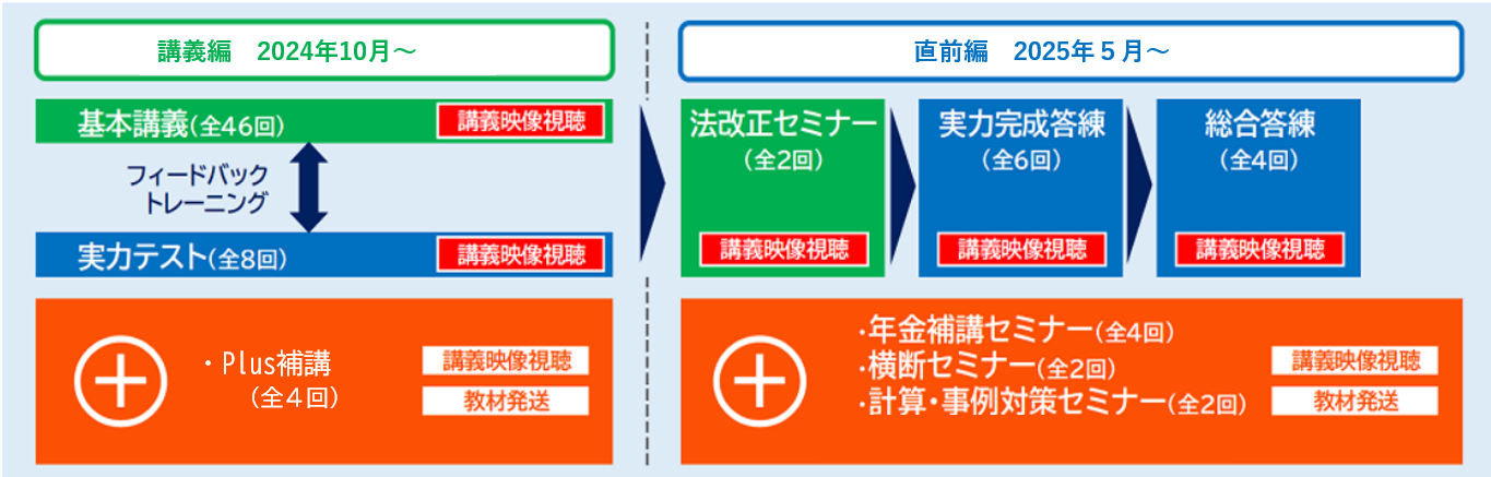 Plus補講(全4回)、年金補講セミナー(全4回)、横断セミナー(全2回)、計算・事例対策セミナー(全2回)については、講義の収録担当が変更になる場合がございます。