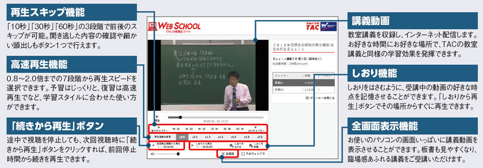 Webフォローは、一部の受講環境ではご利用いただけない場合がございます。お申込み前に必ずTAC WEB SCHOOLの動作環境ページをご確認ください。実際にご受講される端末からTAC WEB SCHOOLにアクセスしていただき、[TAC WEB SCHOOL動作環境のご案内]ボタンから、動作環境チェッカーページへお進みください。