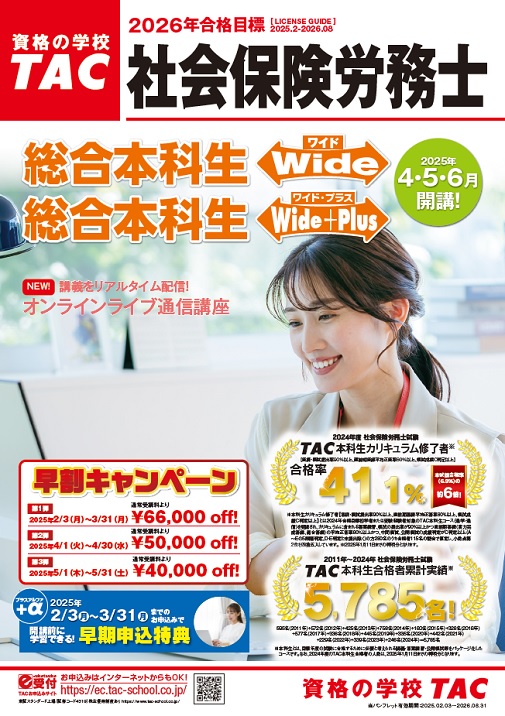 TAC受付窓口/インターネット/郵送/大学生協等代理店よりお選びください。