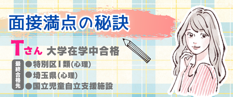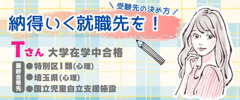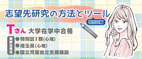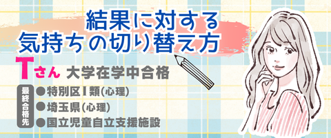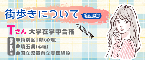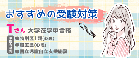 <2023年度合格>Tさん(最終合格先:●特別区Ⅰ類(心理)、●埼玉県(心理)、●国立児童自立支援施設 )