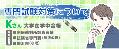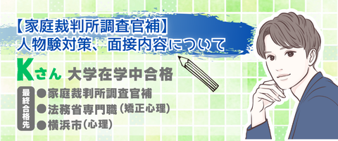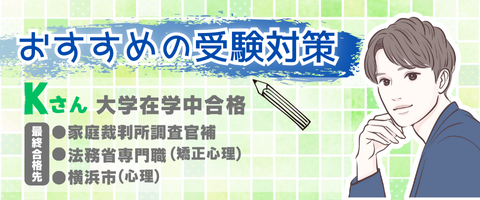 <2023年度合格>Kさん(最終合格先:●家庭裁判所調査官、●法務省専門職(矯正心理)、●横浜市(心理)