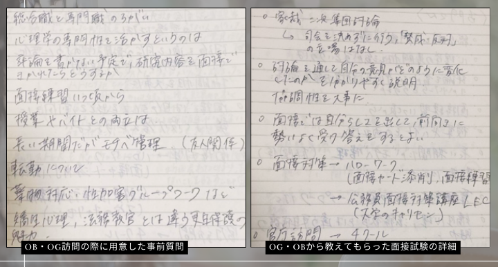 私も心理職公務員を目指そうと決めてから、HPで調べたりOB・OGの先輩にお話を伺ったりしましたが、情報量が多くそれぞれの職種についての志望先研究に苦労していました、、