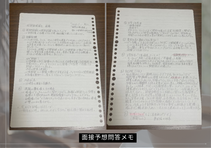 どんな志を持ってお仕事をされているのか、お仕事の中で難しいと感じることは何か、など質問させていただき、その時に書き留めておいたものを面接対策の参考にするということができます。