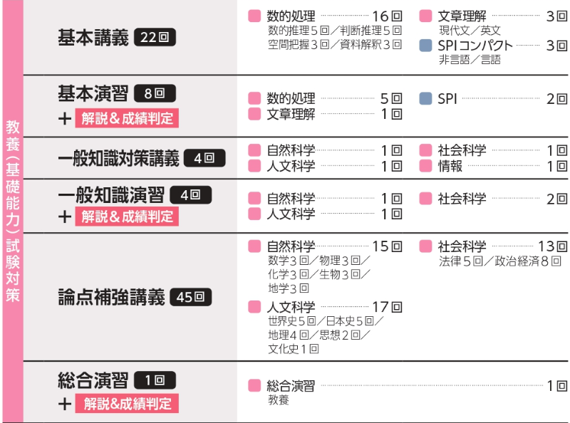 〈INPUT〉講義 重要科目を徹底講義で完全マスターほぼ全ての公務員試験で出題され、なおかつ出題数の多い重要科目で構成されているのが、基本講義です。講義⇒復習⇒問題練習⇒基本演習の流れで各科目を確実に攻略し、合格するための土台を築き上げます。 |