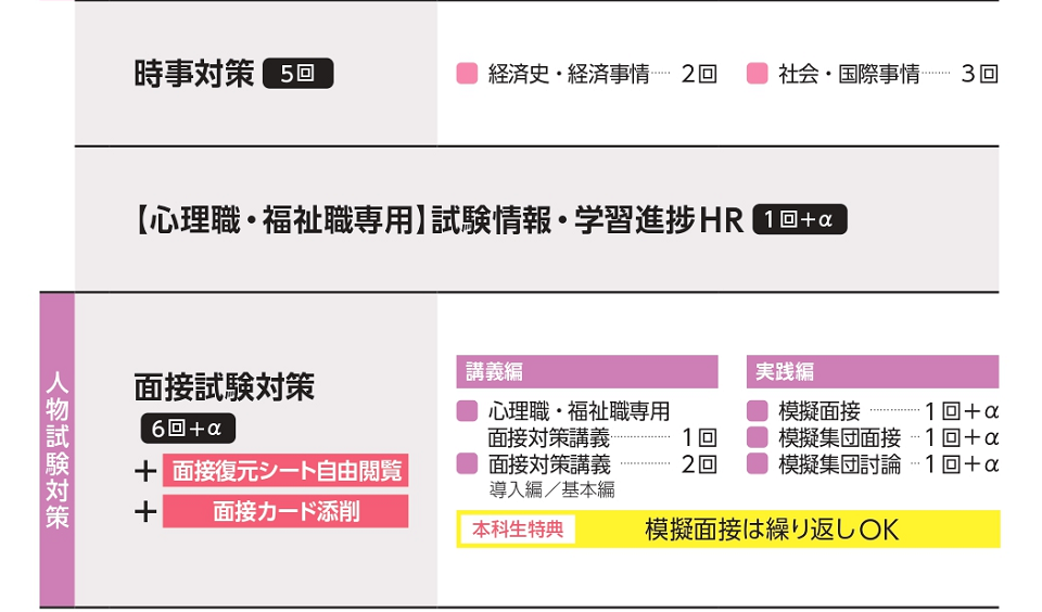 筆記試験対策から人物試験対策まで全て含めた、総合的な受験対策が可能