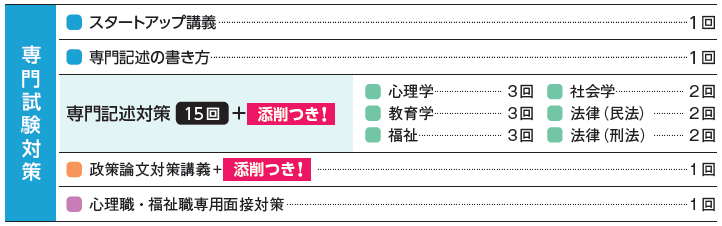 家庭裁判所調査官補試験に必要な専門科目・政策論文・面接の対策講義のみをコンパクトにまとめたコースです。