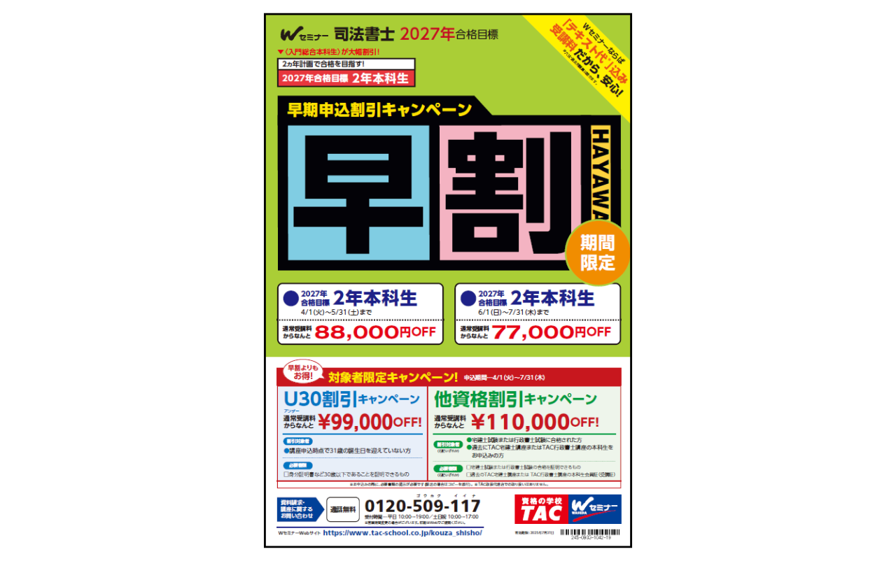 2006年11月~2026年12月 特別再受講割引・早割チラシ【2026年合格目標】
