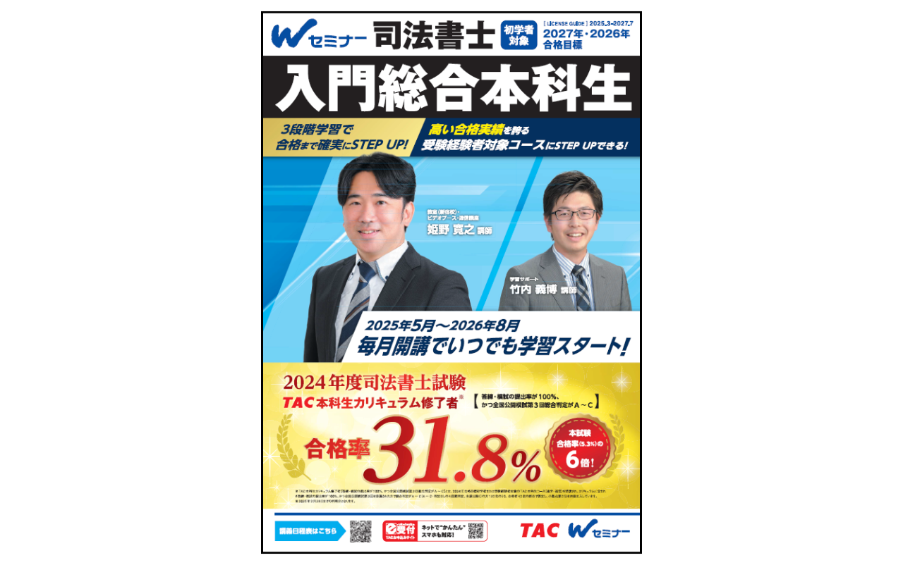 - 【25/12/1(月)更新】2027年目標 初学者対象コース割引チラシ[2025年12月~2026年2月]の情報を掲載しました。
