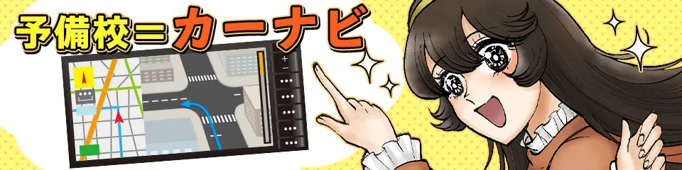 公務員になることを最終的な目標として旅に例えると、地図(教材)やコンパス(スケジュール)を自分自身で準備してゴールを目指すのが独学。自分で運転しなければなりませんが、ゴールまで最も効率的なルートに導いてくれるのが予備校(カーナビ)と言えるでしょう。