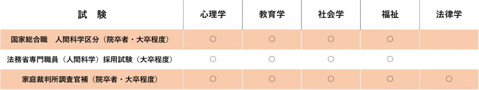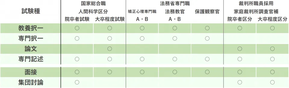 心理職公務員(例:国家系)試験種目表