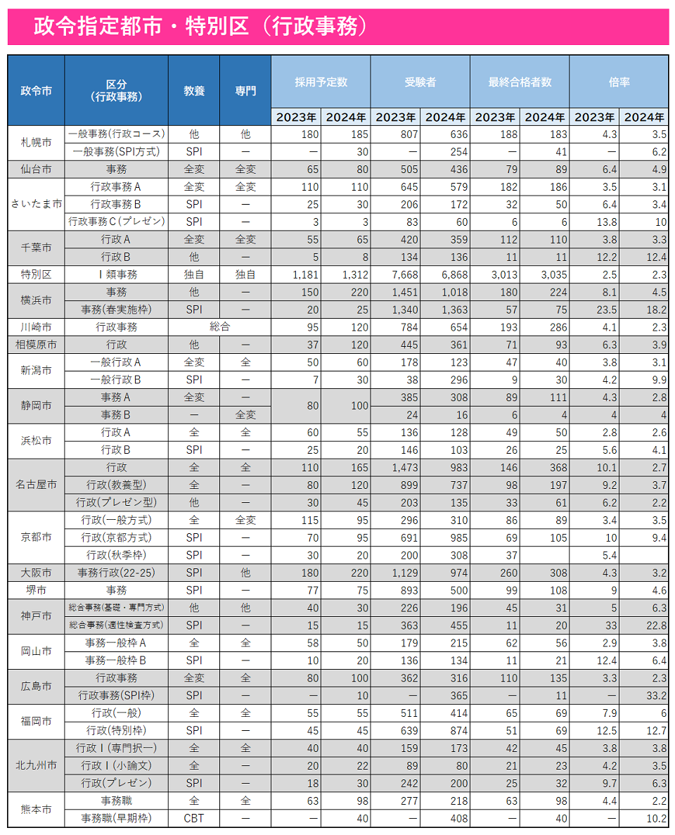 | 名古屋市 行政A(自己PR) | 30 | 290 | 99 | 41 | 7.1 |