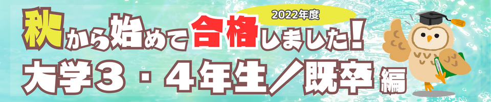秋割キャンペーン中! 大学2年生におすすめ! 【2025年合格目標】「大学2年生」や「留学予定の方」におすすめ! |