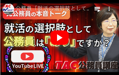 「やっぱり公務員になりたい!、大学を卒業しても公務員を目指したい!」そういった皆さんにお送りするTACのオンラインセミナーです。