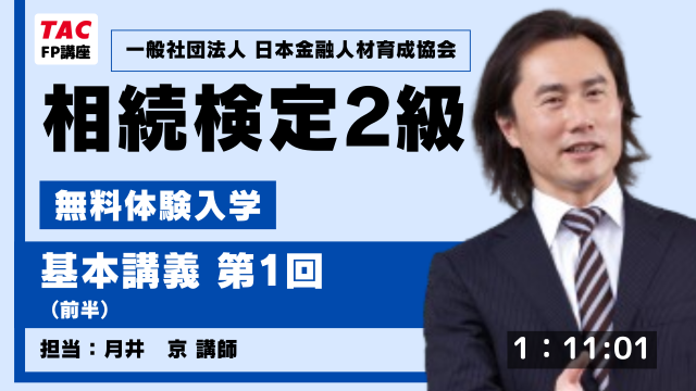 相続検定2級 基本講義 第1回(抜粋版)[25・26年度版]です。プロ講師のわかりやすい講義・使いやすいTACオリジナル教材など…一度体験してみてください!