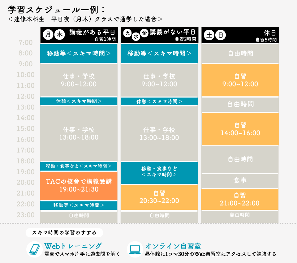 ※一般教育訓練給付制度を通学メディアでご利用の場合、Web講義フォローでの受講は出席として扱われませんのでご注意ください。詳細はTAC発行の「教育訓練給付制度パンフレット」をご確認ください。