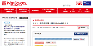 講義の1単元が10~20分ほどにまとまっているので、デジタル教材も活用しながらスキマ時間を使って少しずつ学習を進めることができます。 またTACの強みであるフォロー制度が充実。「オンラインホームルーム」や回数無制限の「質問メール」などが標準装備されていますので、Web学習であってもモチベーションを維持しながら学習を進めることができます。まとまった時間がとれずスキマ時間を活用したい方におすすめのコースです。
