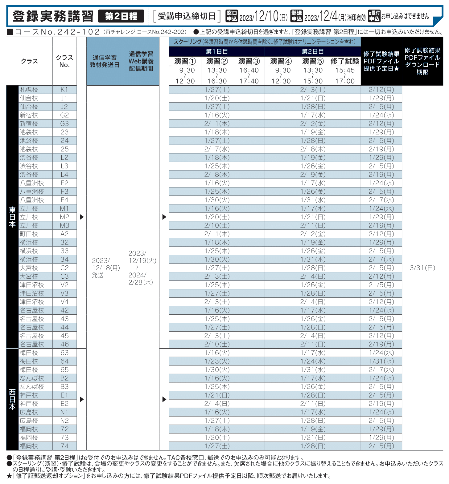 TAC株式会社の登録実務講習をお申込みの際は、以下の「TAC登録実務講習お申込みに関しての注意事項」(PDFファイル)を必ずお読みいただいた後にお申込みください。