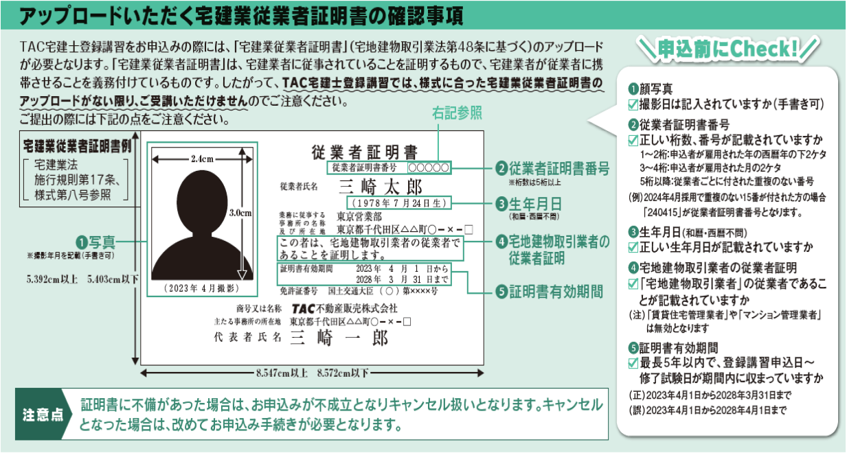 - スクーリング時には、TAC会員証、登録講習テキスト、筆記用具、従業者証明書(コピーでも可)を必ずご持参ください。