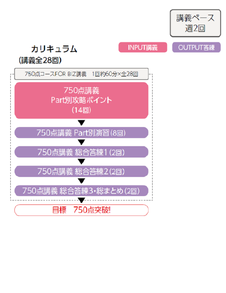 ※「750点コースFOR BIZ」講義は、2022年4月開講より講義カリキュラム・教材がリニューアルしています。