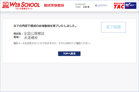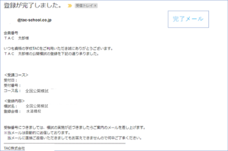 - 本サイトでの手続き完了時などを含めメールを送信させていただきます。送信先のメールアドレスはTAC WEB SCHOOLマイページ登録時にご登録いただいたメールアドレスです。