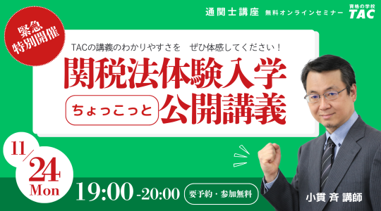今回は、通関士試験の難所でもある”関税法”を無料体験できます。