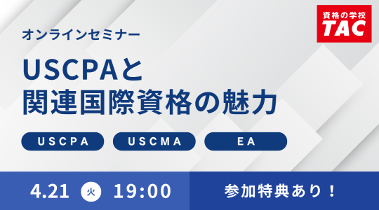 4/21(火) | オンライン | 講座説明会 | USCPAと関連国際資格の魅力(予約制)★★ご予約の方限定 見逃し配信あり★★ |