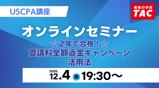 12/10(水) | オンライン | セミナー | 日本の公認会計士がUSCPAを目指した理由(予約制)★★ご予約の方限定 見逃し配信あり★★ |