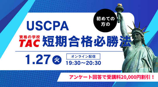 1/31(土) | オンライン | 講座説明会 | 初めての方のUSCPAセミナー(予約制)★★ご予約の方限定 見逃し配信あり★★ |