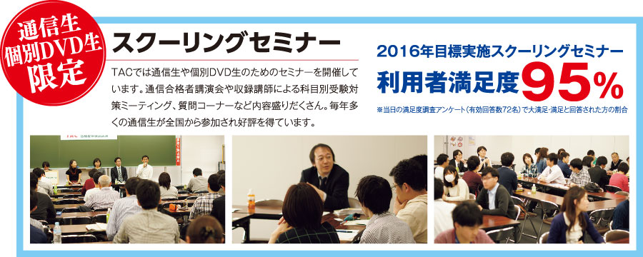 各種コースの通信生なら教室講座のクラスに出席いただけます(回数制限あり)。通学生と一緒に講義を受講し、直接講師と話すことで、学習におけるモチベーションがより高まります。 さらに、答練実施回に出席し、他の受講生と一緒に問題を解くことは、本試験の模擬体験にもなります。