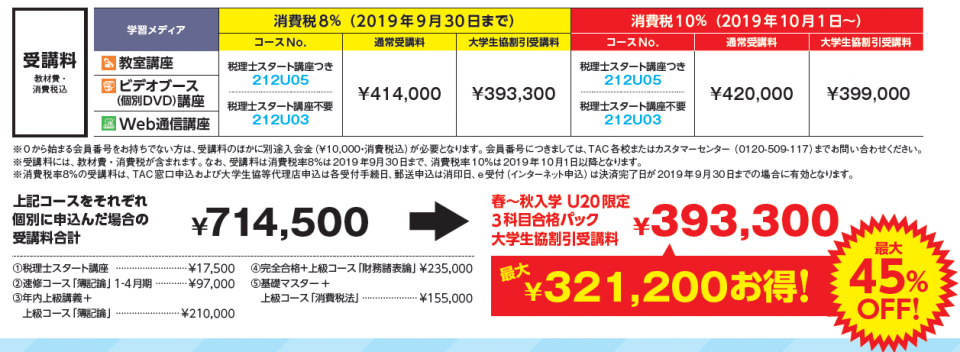 ※各コースの詳細は、各コースページまたは税理士講座パンフレットをご確認ください。