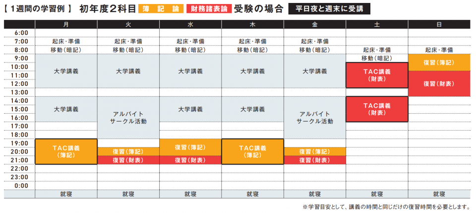 税理士試験は科目ごとに受験ができるため、授業数の多い大学1年次は1科目に絞る、少し落ち着いてきた大学2年次以降で2科目学習を目指すなど、状況に応じて学習量を調整することができます。