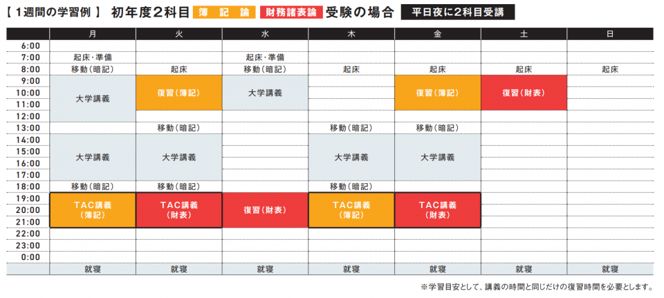 ●20~25時間/週の場合 2科目学習