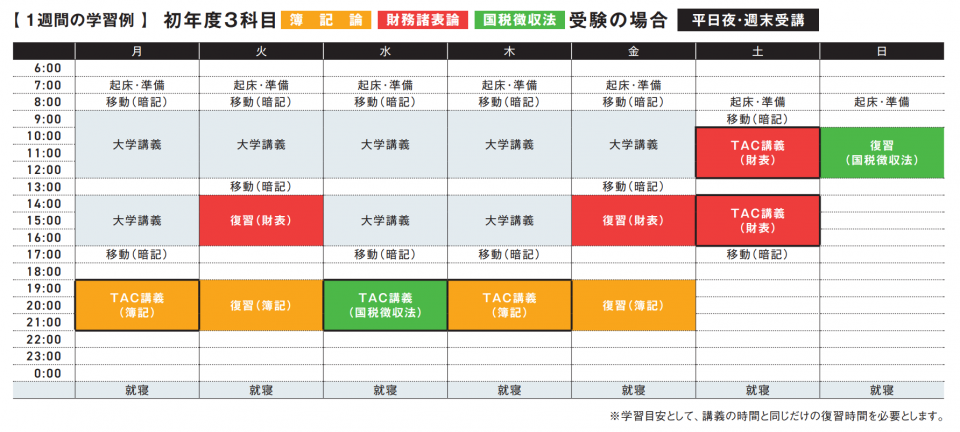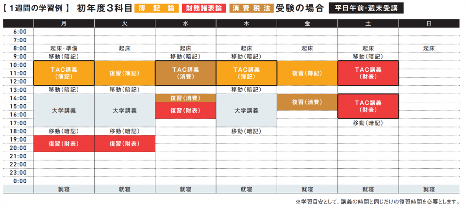 ●3科目学習の場合 簿記論と財務諸表論と学習ボリュームの少ない税法科目