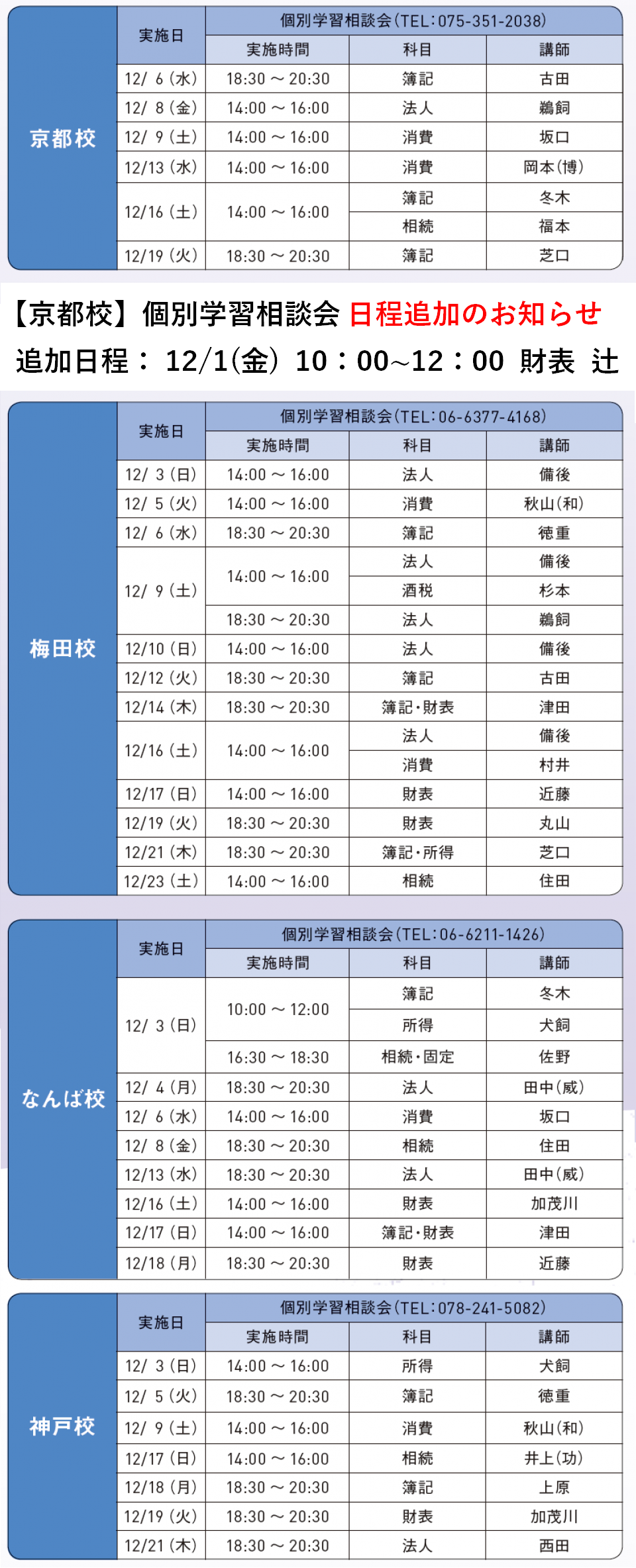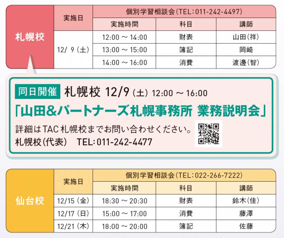 個別相談会を全国のTAC校舎で開催します!事前にスケジュールを確認しTAC校舎へお越しください。※一部校舎はWeb予約制となります。